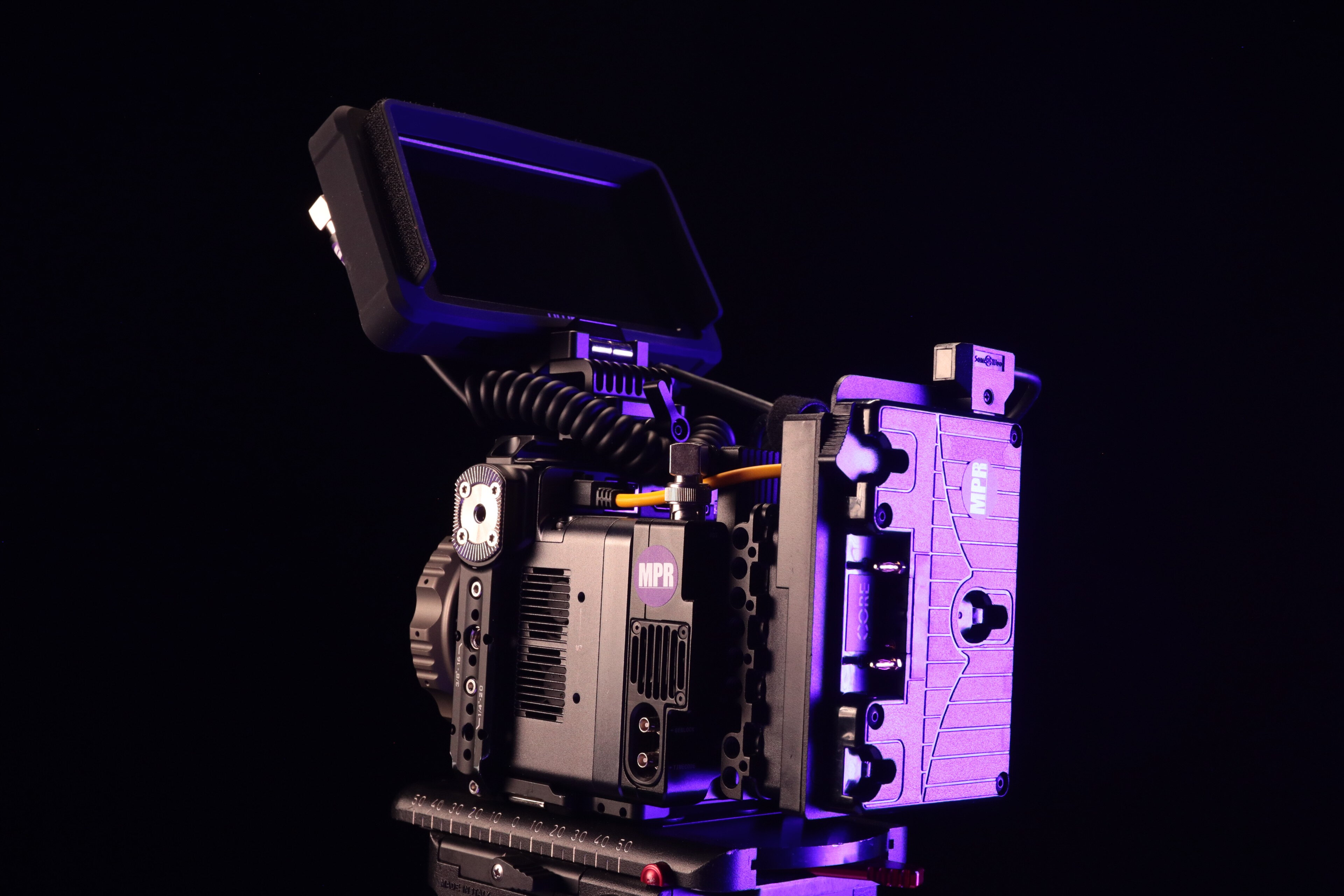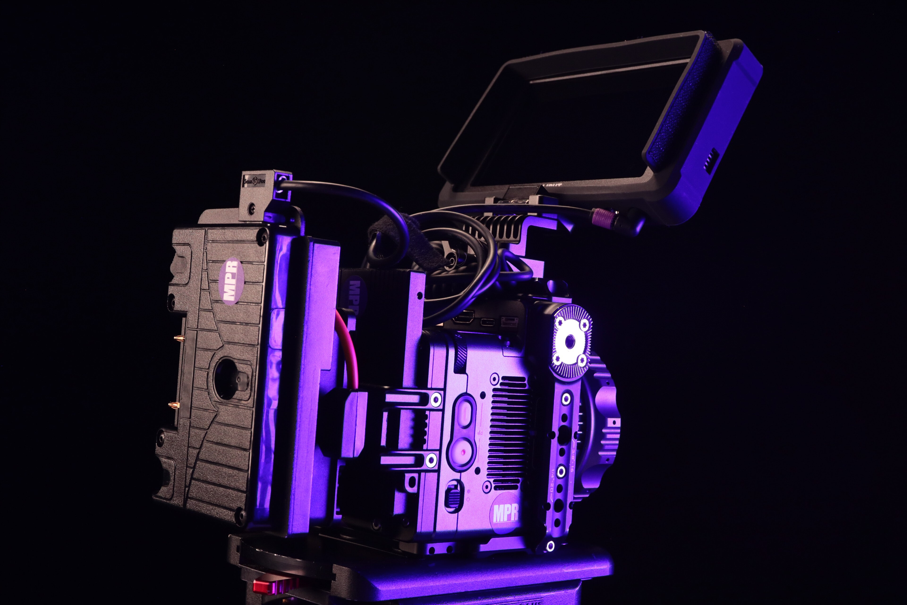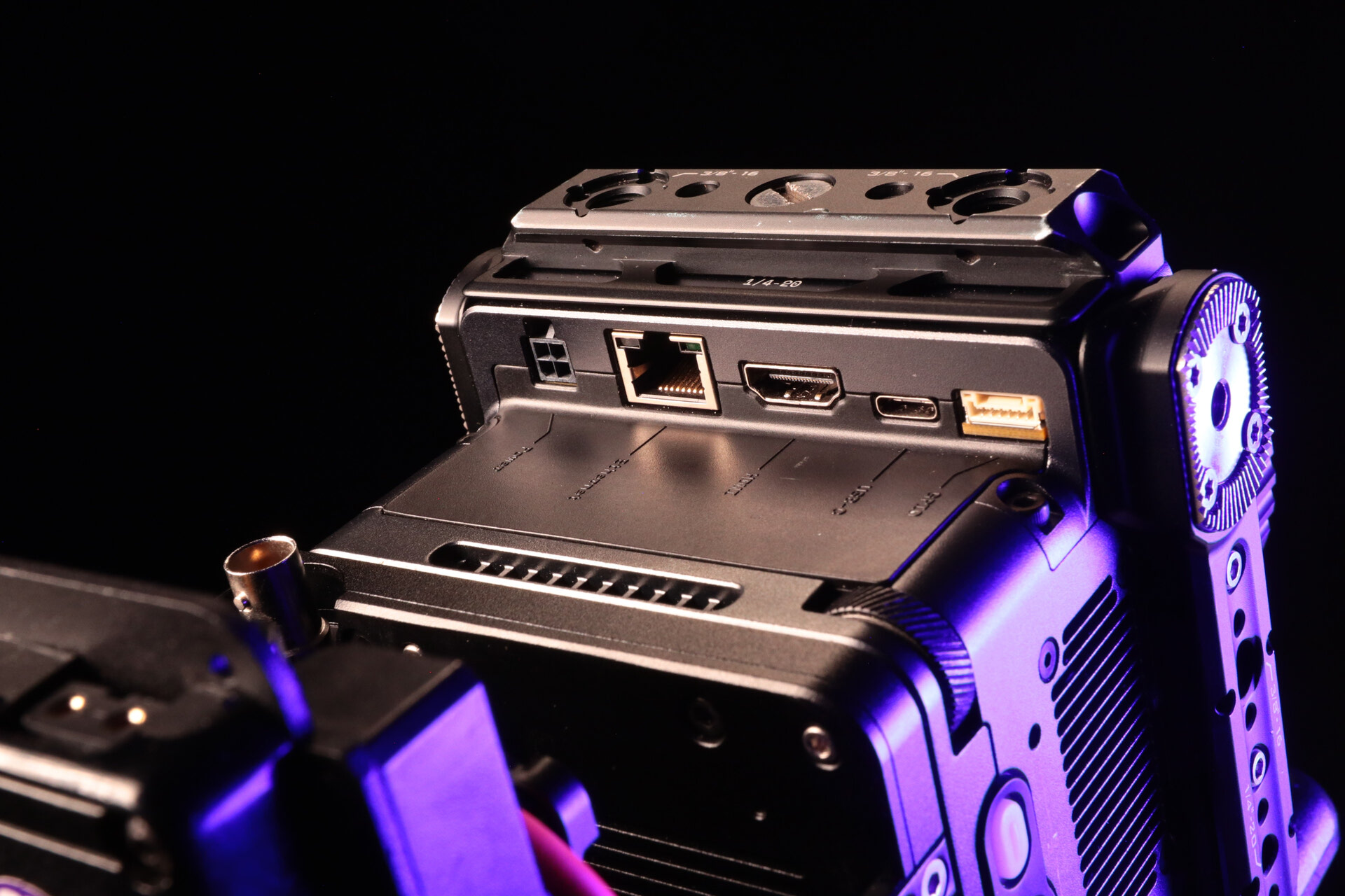 Power the camera using a separately available power source using the included 4-pin Molex to D-Tap cable with a power plate or battery. Numerous accessories can be added, such as handles, cheese plates, and battery mounts, using the 1/4"-20 and M3 threads around the camera body.